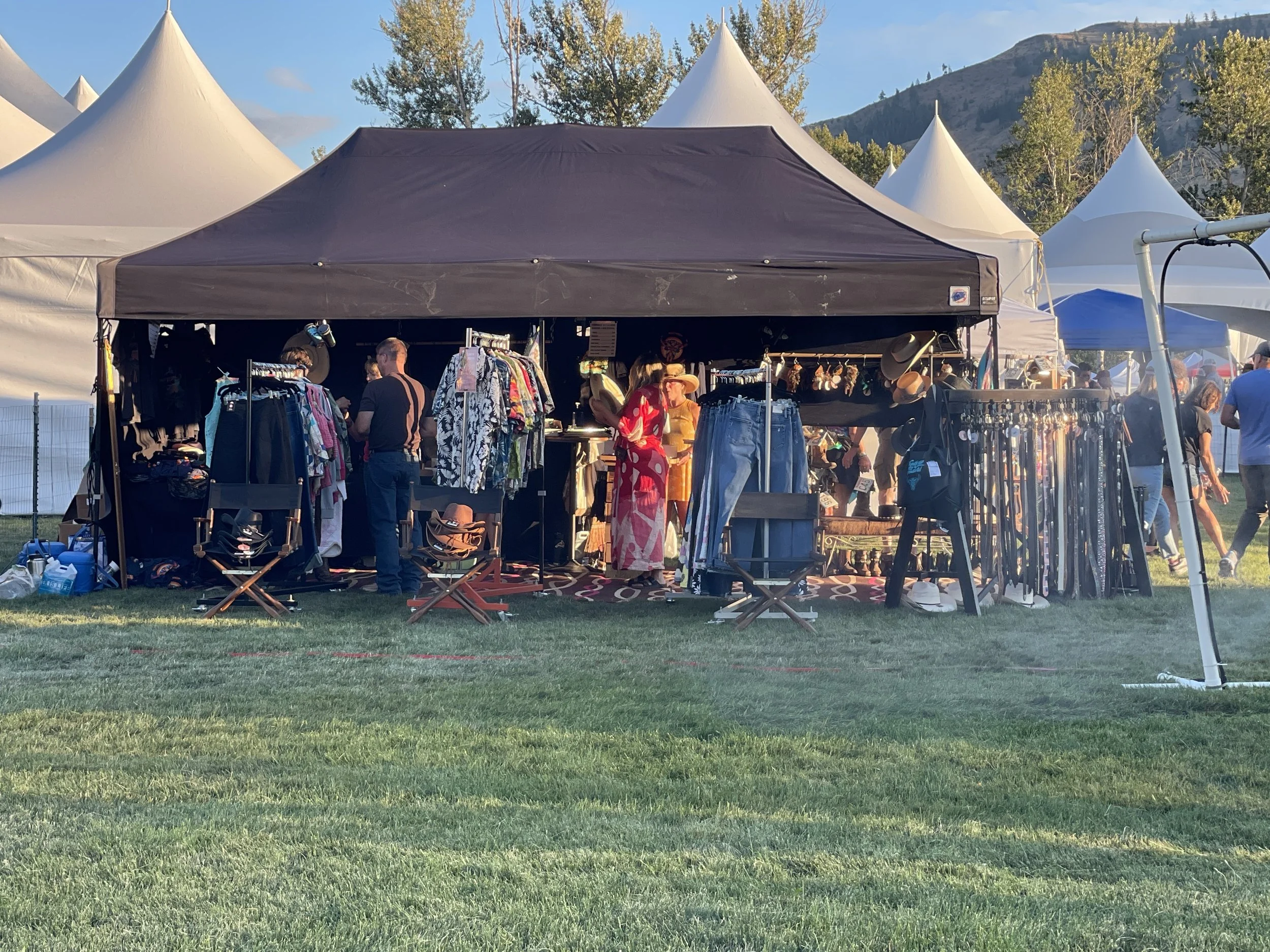 A few weeks ago in 2025 we loaded up the White Knight again, this time with a 10x20 pop up tent and lots of hats, and over the three day festival in Winthrop, I hand-shaped straw hats to order under blue skies while live music filled the air.